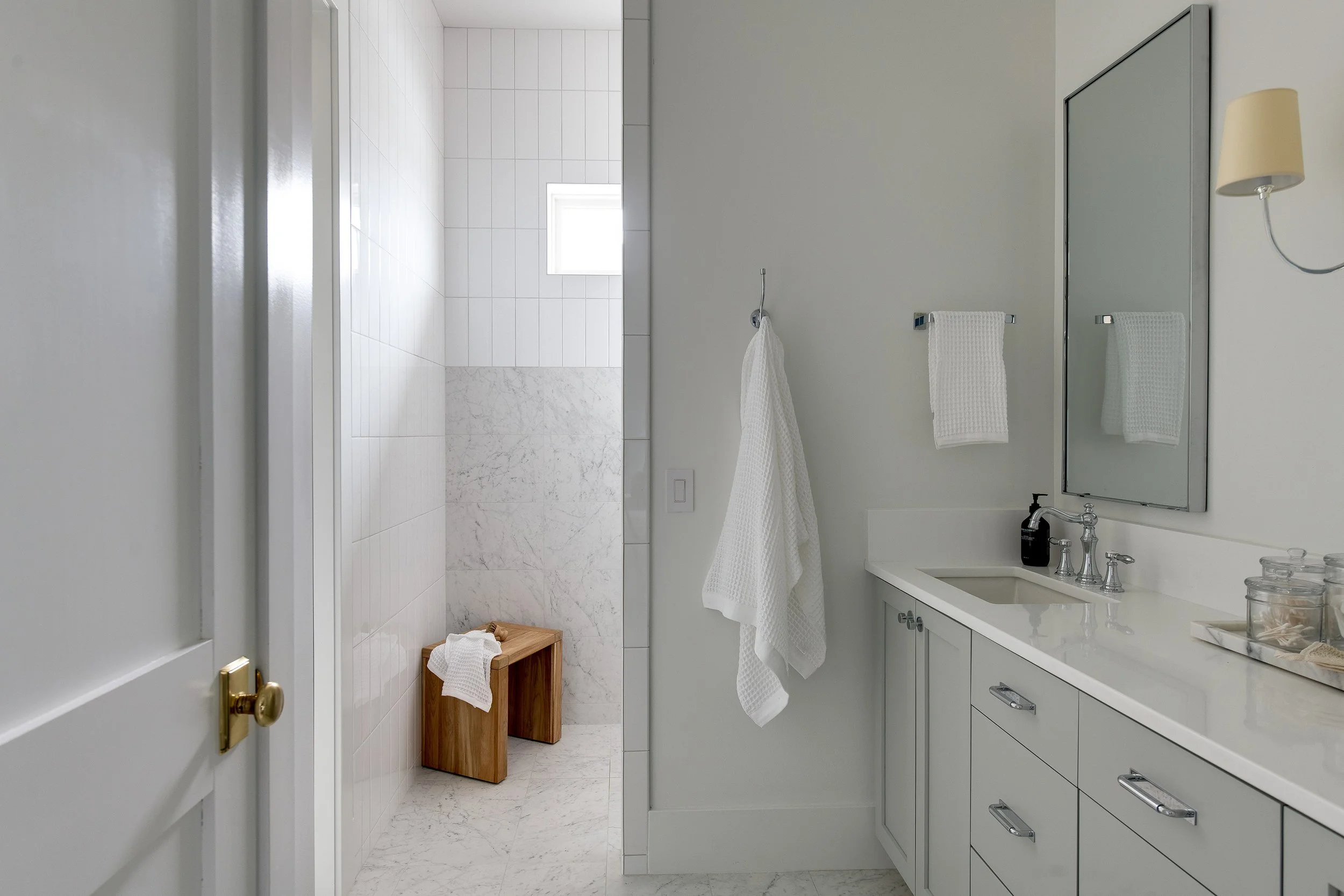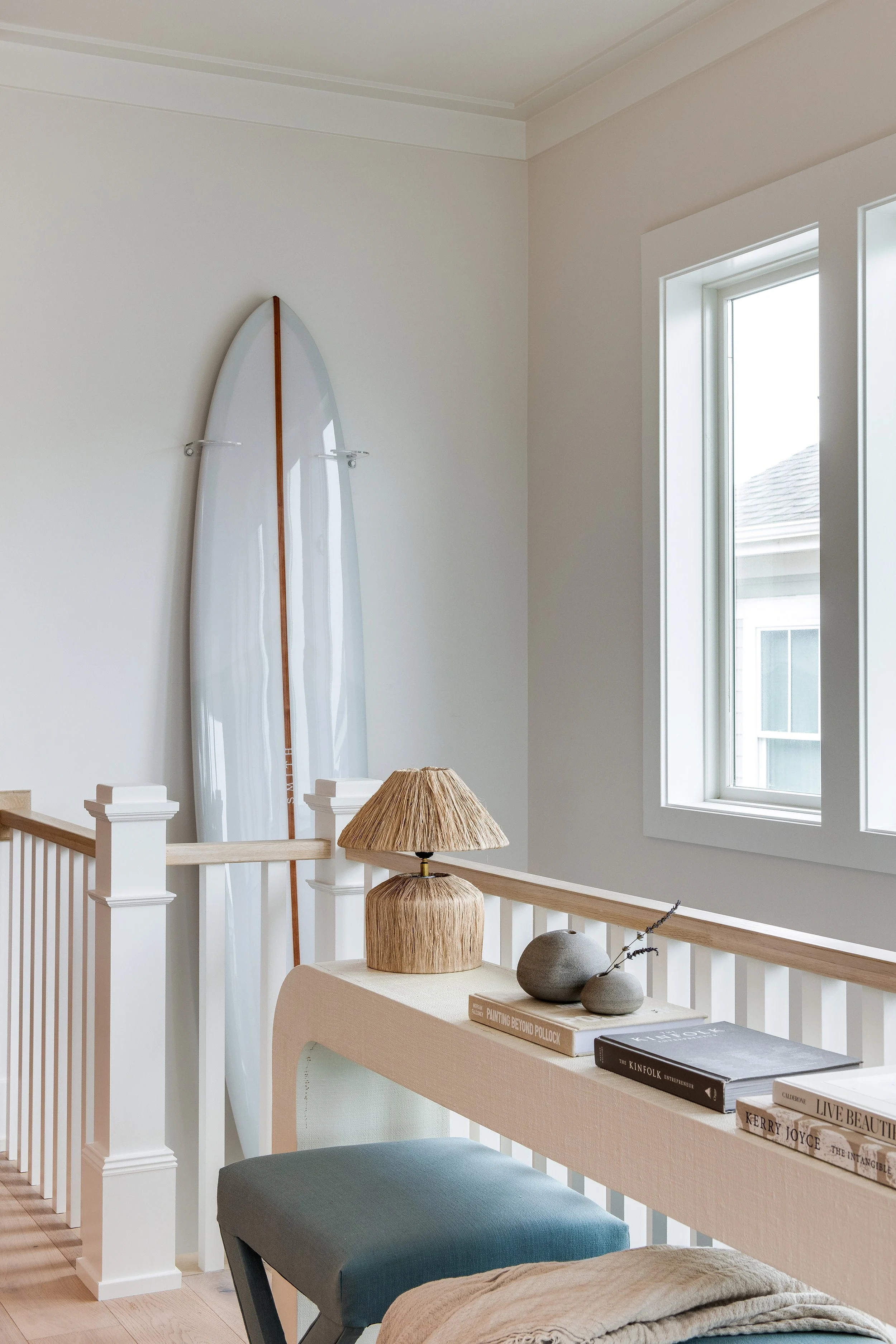 A new construction home with an ocean view and a laid-back feel, this property was designed with family in mind. With a timeless appeal, this home is our take on a classic coastal aesthetic; whites, blues, and layered textures inspired by the ocean.