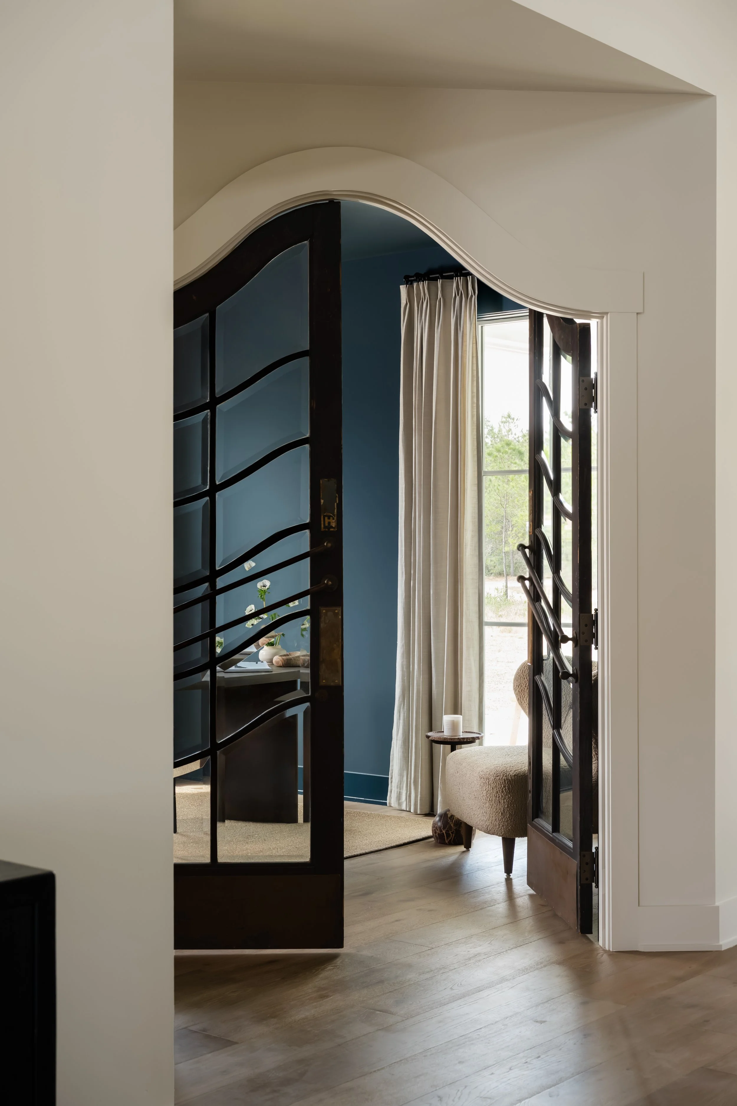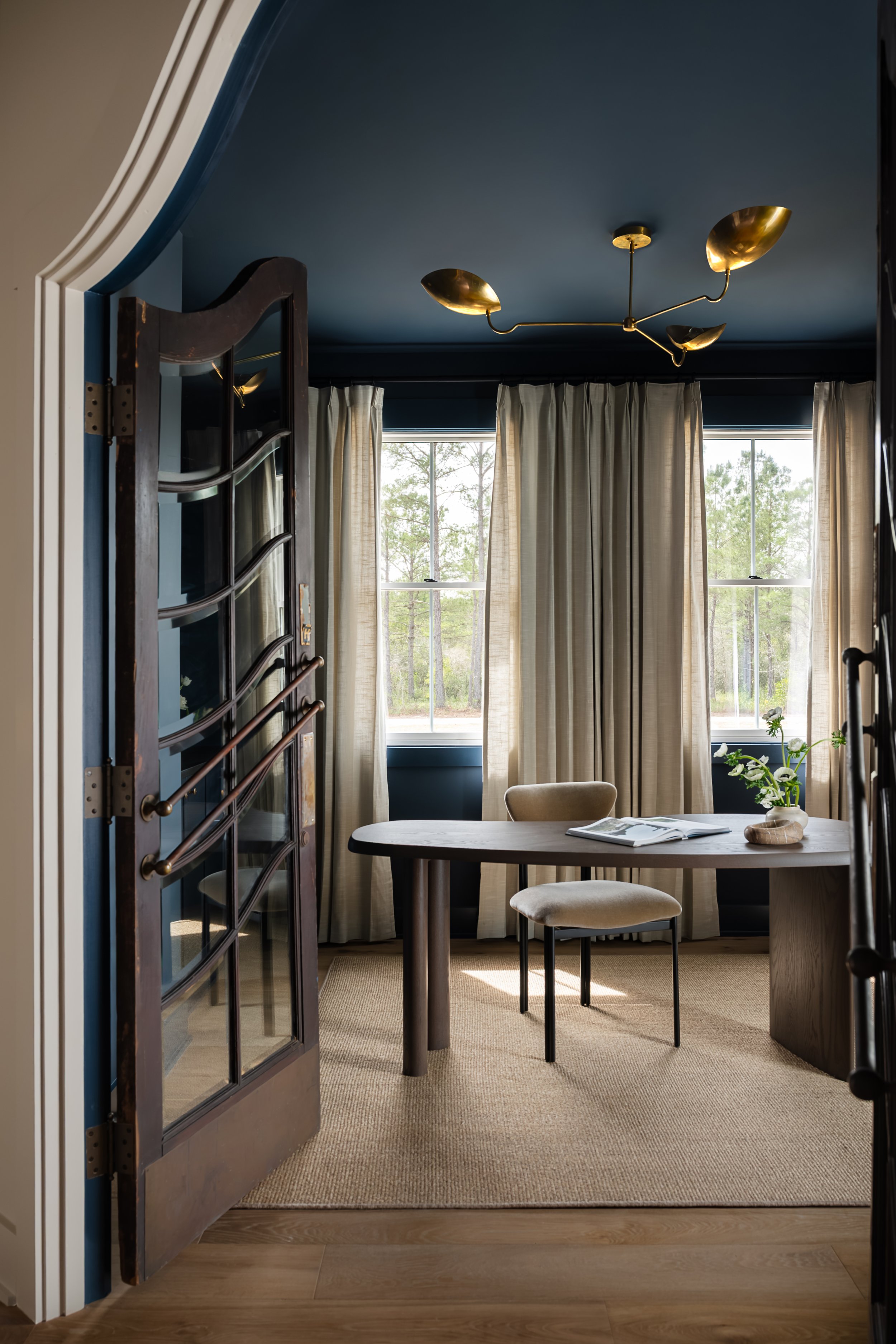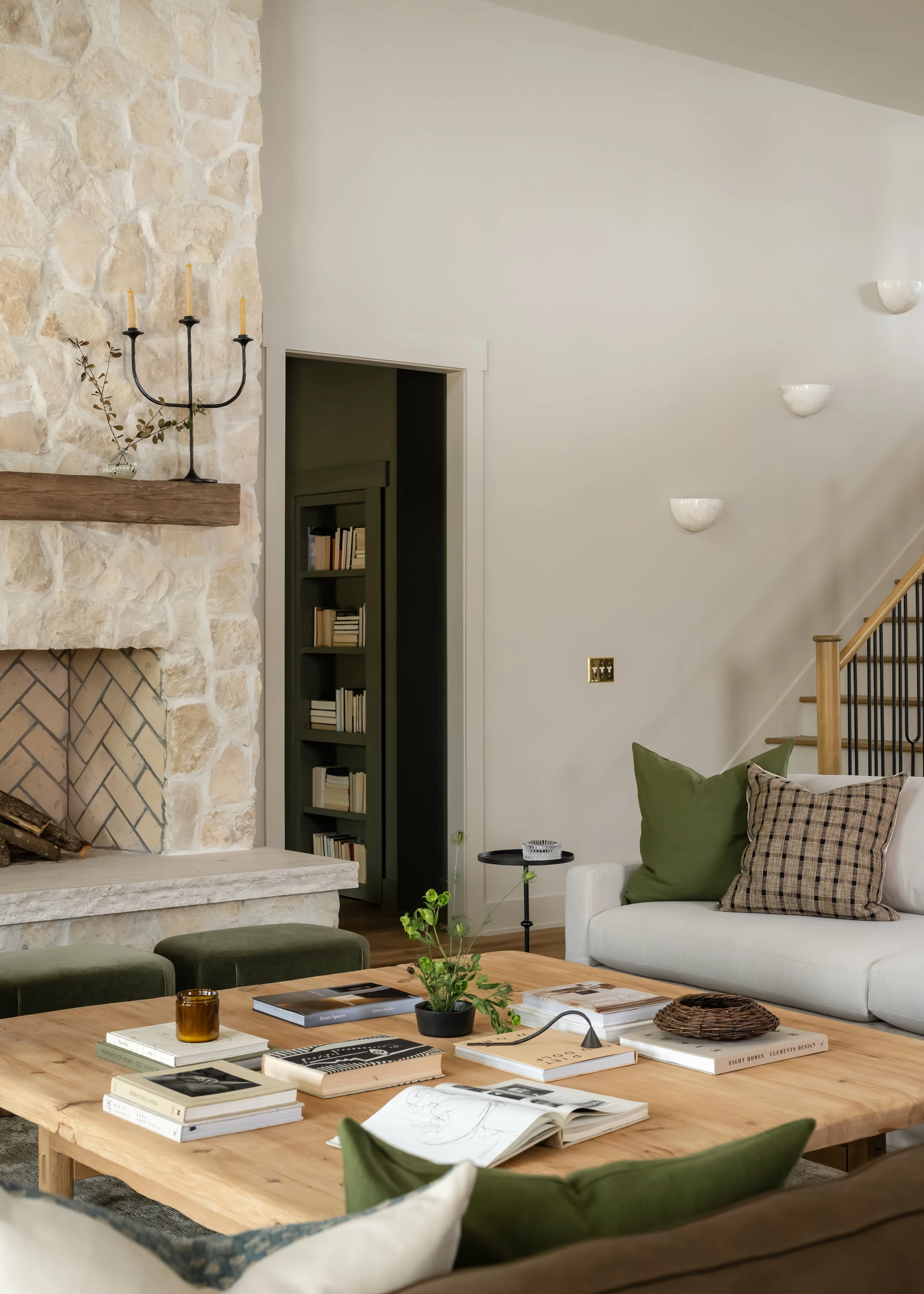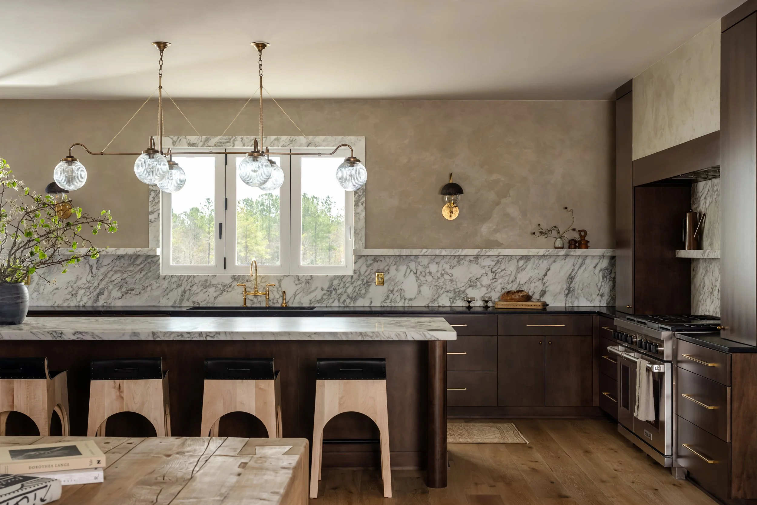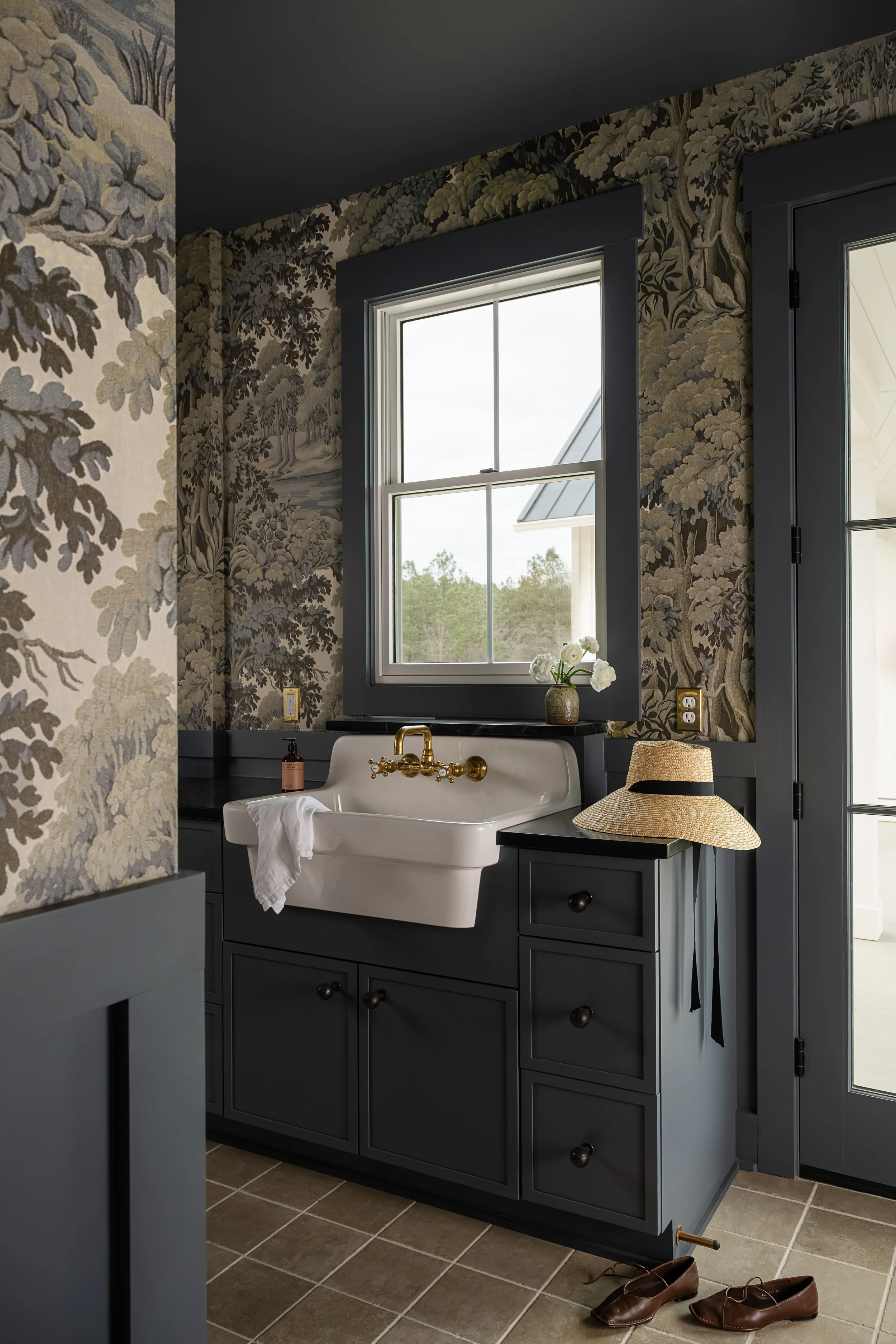 Based just outside of Wilmington on a 120+ acre tree farm, this new construction home is full of authentic, timeworn materials that foster a deep sense of connectedness to the land. The home is both sophisticated and laid back, drawing inspiration from the surrounding landscape and textural, natural elements. An open, airy entertaining space paired with pockets of moodier, cozier spaces provides the best of both worlds for the homeowners, who envisioned the property as home to many cherished memories with their grandchildren.